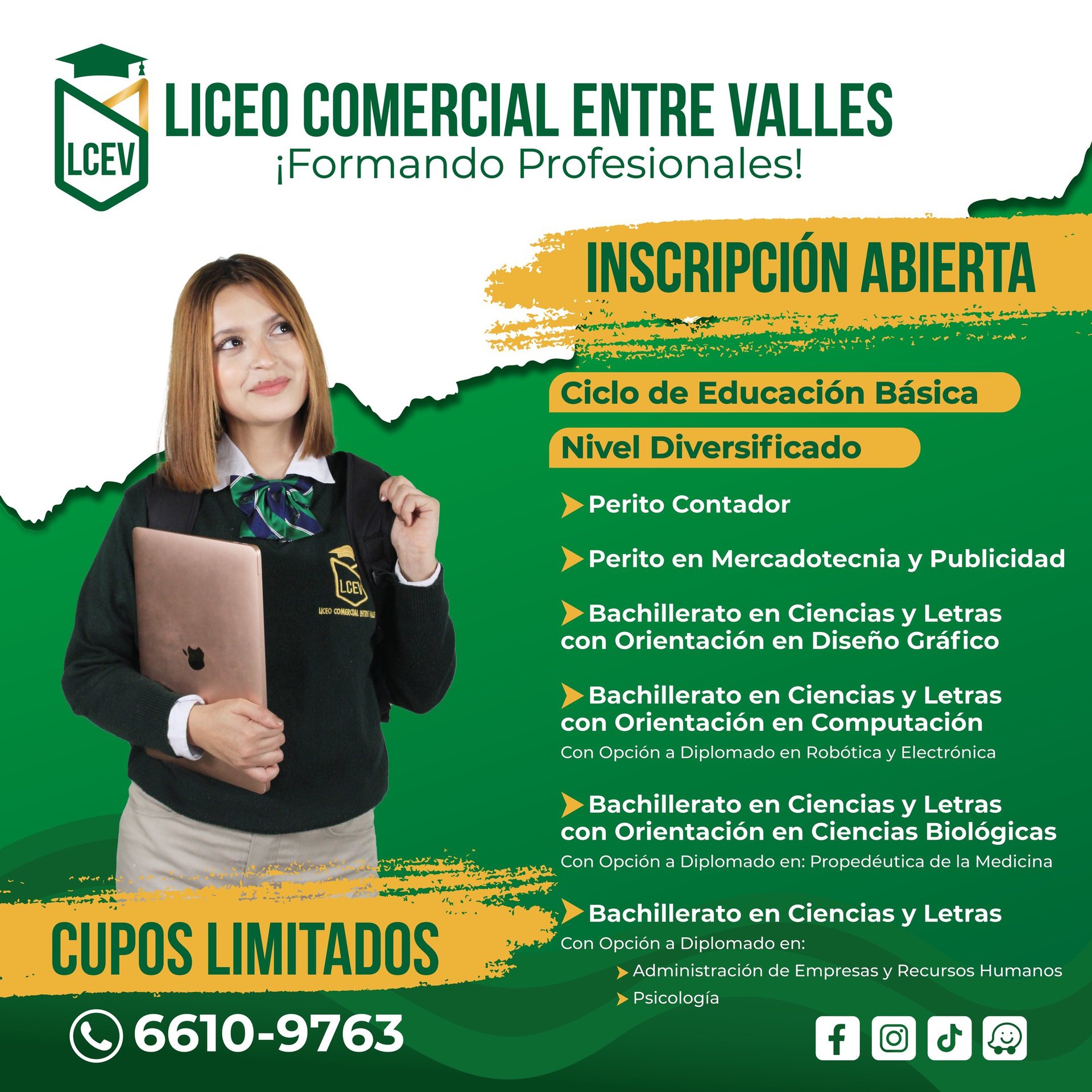 En el Liceo Comercial Entre Valles, formamos profesionales con un alto estándar académico, brindando una educación contemporánea y especializada en múltiples disciplinas.